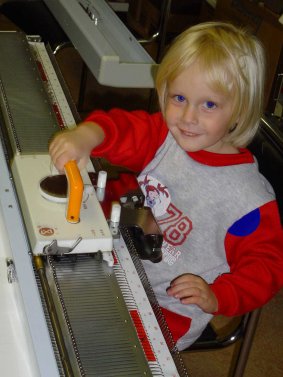 übernimmt das mechanische Abstricken der Maschen, die Festlegung von Mustern erfolgt jedoch durch individuelle Auswahl der entsprechenden Nadeln.